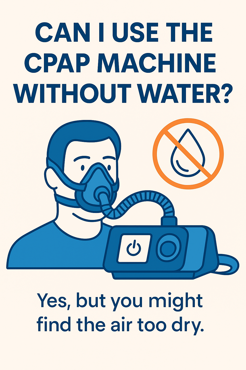 Yes, you can use a CPAP machine without water as the humidifier is an optional comfort feature, not essential for therapy. However, the machine will only provide dry air, which can lead to discomfort like dry mouth, nose irritation, or nasal congestion. If you choose to use your CPAP without water, you can turn off the humidifier unit and possibly turn on a blanking cover or ensure humidification settings are off, depending on your machine.