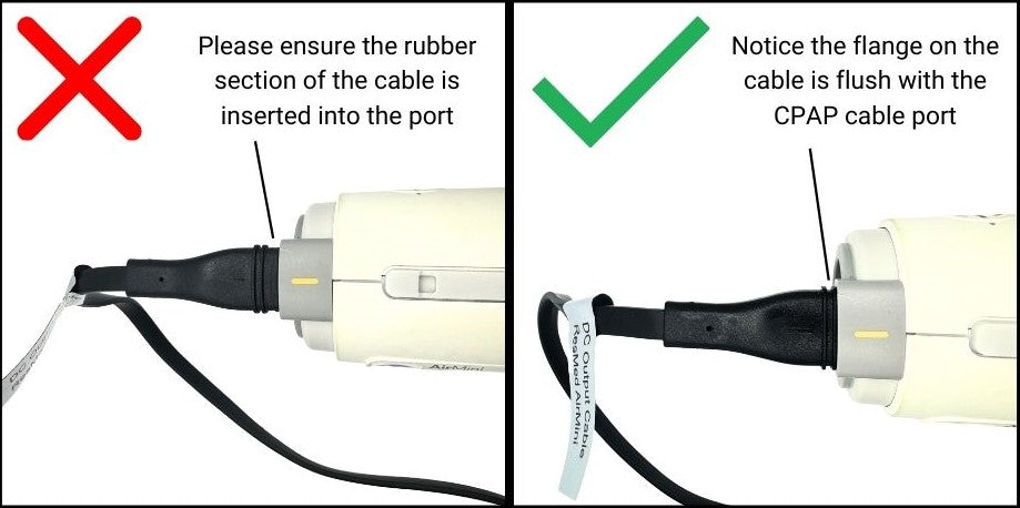 The Pilot 24 to AirMini connection is quite firm, this is by design so the connector is not accidentally dislodged when used during travels (in airplanes, camping and caravan situations where the machine and battery could be in movement)